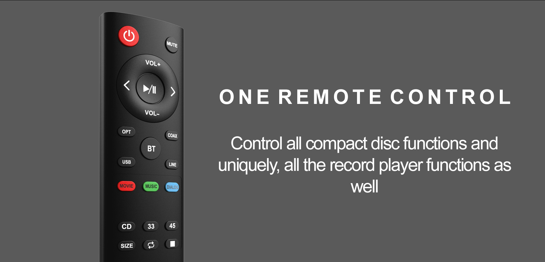 • CD & Record: Play, Pause, Skip Forward, Skip Backward, Repeat, Stop
