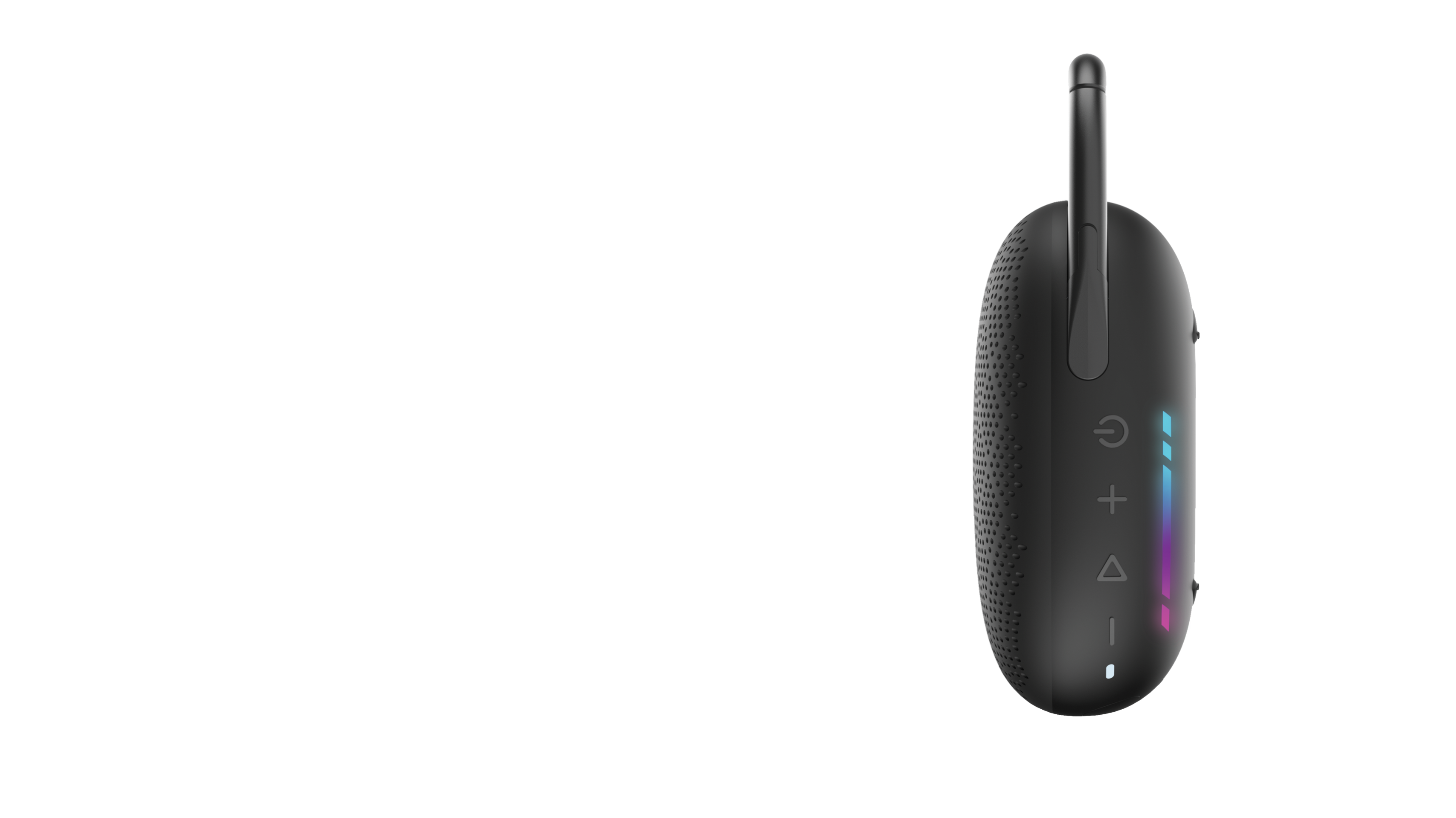 An easy-clip, spring-loaded handle lets you attach the speaker to bags, bikes, or gear, while the multi-coloured lighting display adds energy and atmosphere to every track.